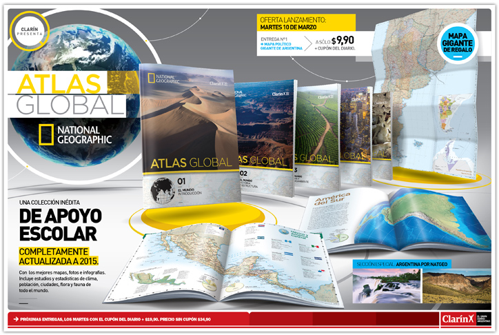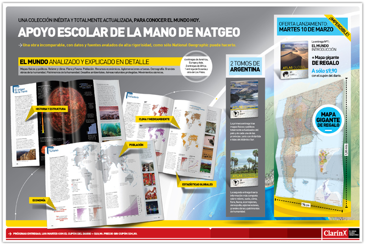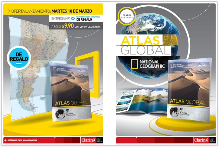 Campaña 360º para el lanzamiento del coleccionable Atlas Global de National Geographic, opcional de diario Clarín.